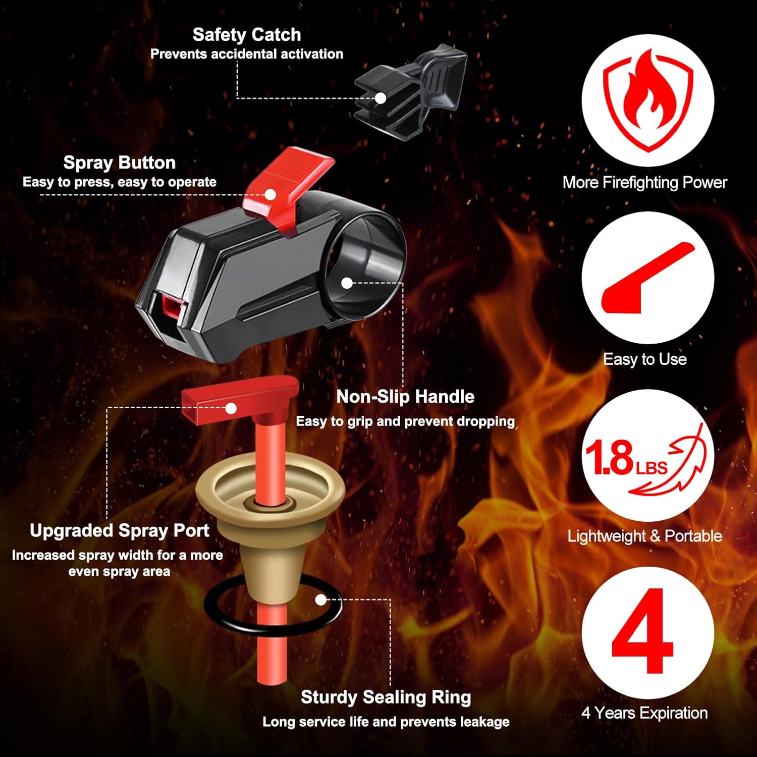 [ EASY TO USE ]: When a fire breaks out, every second counts! The MEINV kitchen fire extinguisher is designed for easy use. Simply pull out the hydrant, aim the extinguisher at the flame and press the handle button to quickly extinguish the flame. Prevent it from becoming a bigger disaster! It is very simple to use, everyone can use it easily. Say goodbye to bulky, messy and complicated fire extinguishers.