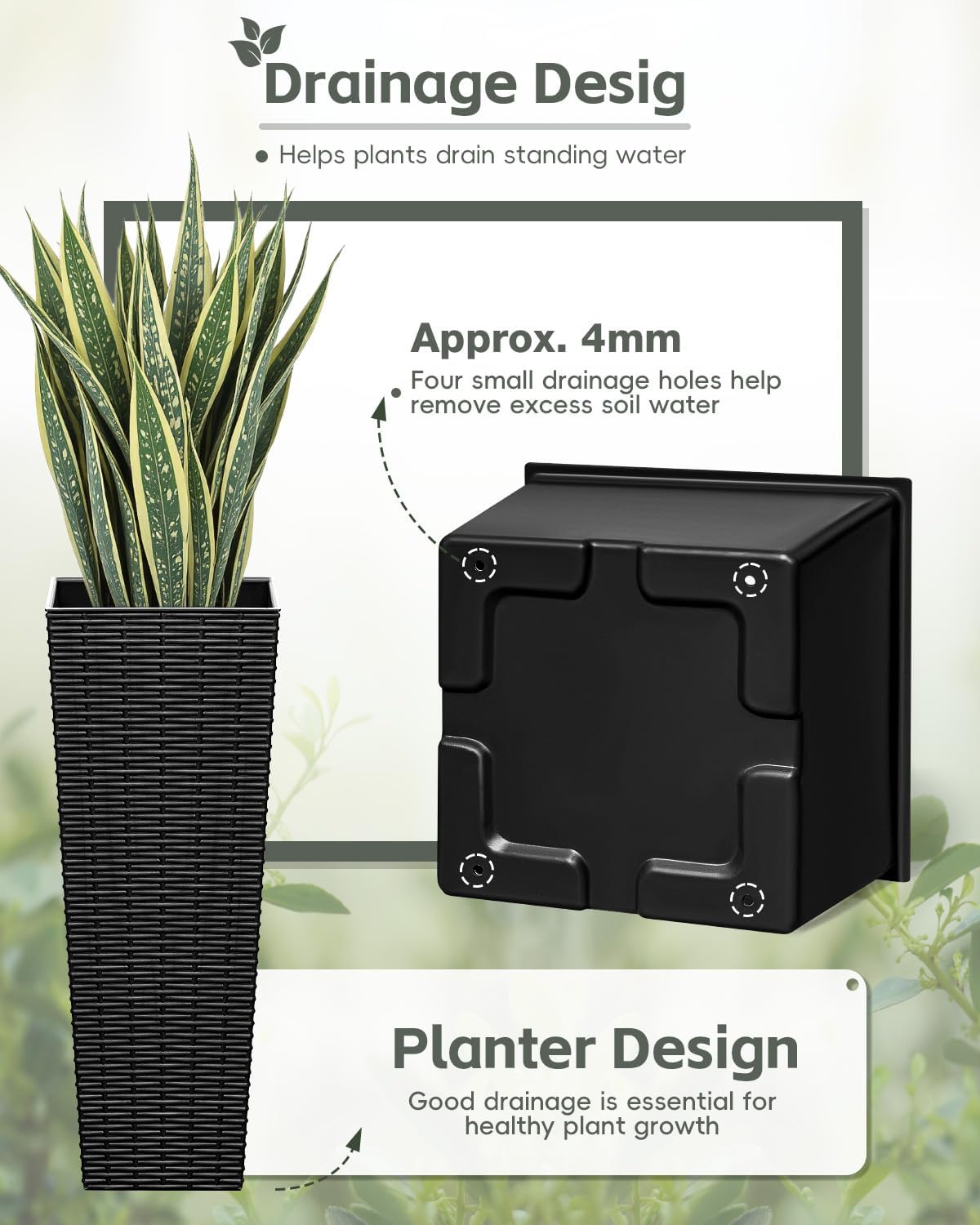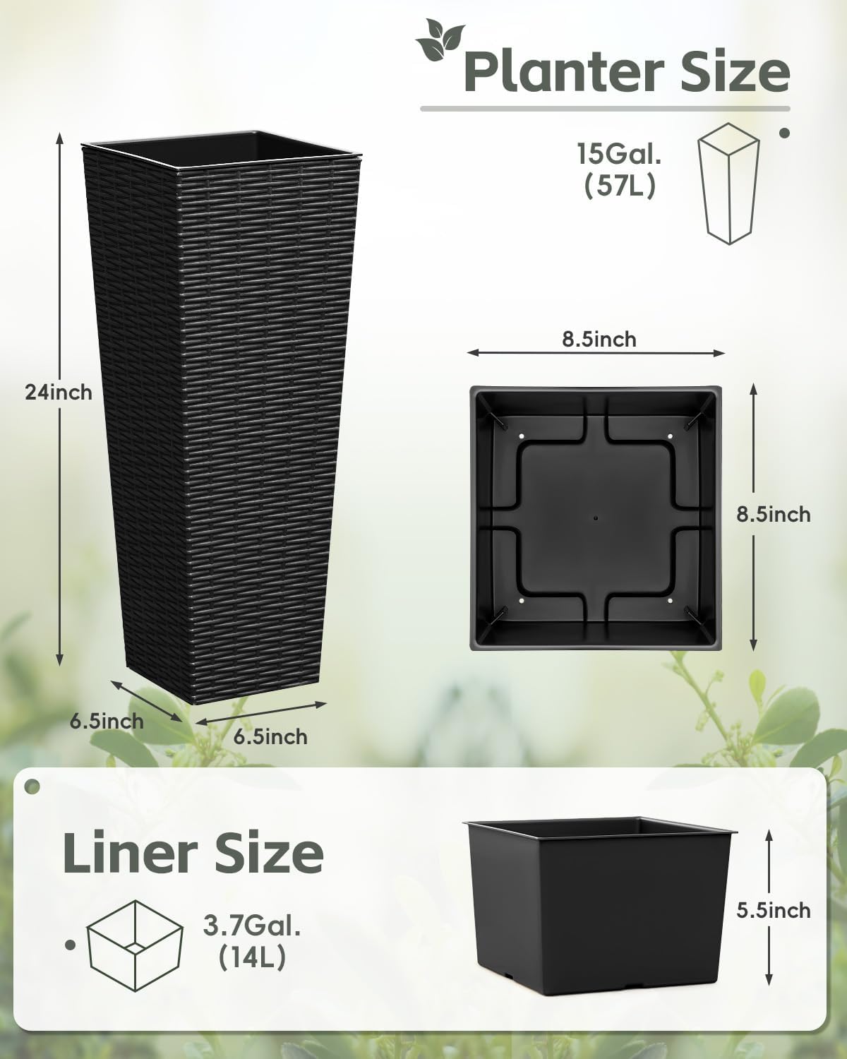 9 reviews for Greesum 24 Inch Tall Plastic Planters with Rattan Texture – Set of 2, Detachable Inner Pot & Drainage Holes, Indoor/Outdoor Decorative Flower Pots for Large Plants, Trees, Patio, and Garden, Black